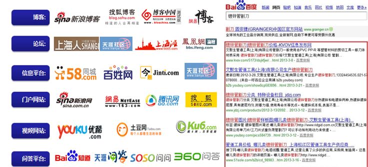 我們通過博客,論壇,信息網(wǎng)站,B2B平臺,百科/文庫,視頻/知道等口碑資源進行企業(yè)正面口碑宣傳,提升企業(yè)形象與網(wǎng)站權重